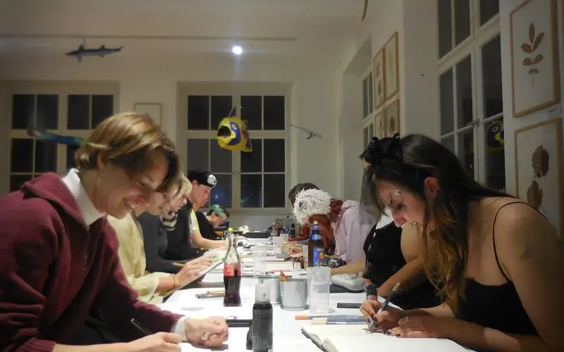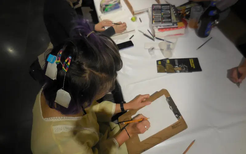 Bei einer erfrischenden Bionade oder dem ein oder anderem gläschen Wein haben wir uns gegenseitige porträtiert. Dabei sind nicht nur sehr schöne und einzigartige Zeichnungen entstanden sondern auch tolle Gespräche. Die entspannte Atmosphäre der Natur Abteilung des Museum Wiesbaden war die perfekte Einladung um sich näher kennenzulernen und in den gegenseitigen Austausch zu kommen. Nachdem der offizielle Part des Drink&Draw um 21 Uhr vorbei war, ging es dann sogar noch mit einigen von euch weiter zu einem kleinen after Treffen um noch ein wenig zu quatschen und den Abend ausklingen zu lassen.